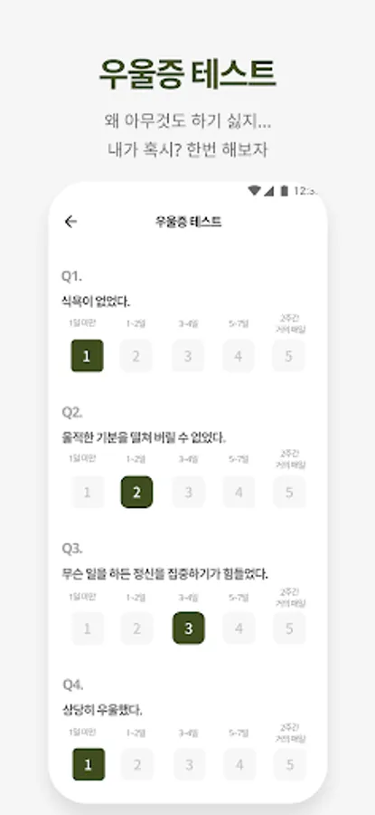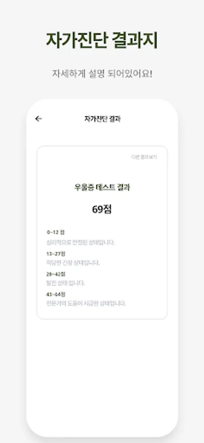 It is a depression self-diagnosis app that allows you to quickly check your condition.