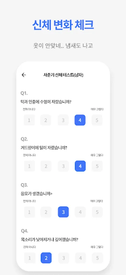 - Puberty physical test (male) 12 questions (takes 30 seconds)