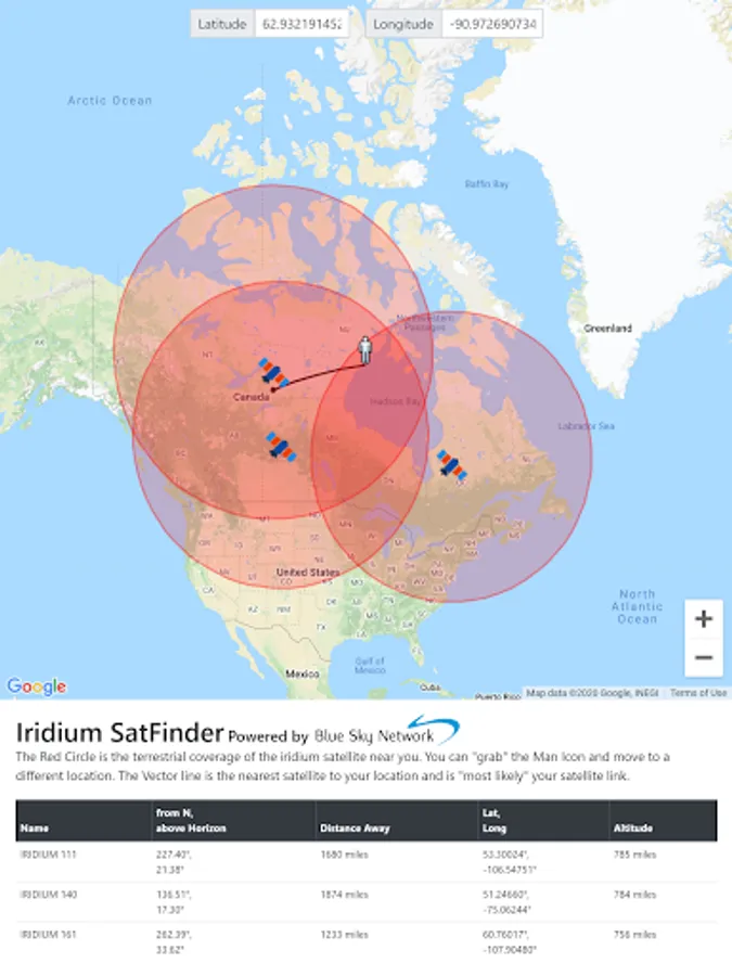 See in real-time which Iridium satellites are overhead and are probably serving you.