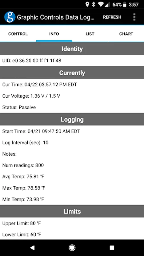 This application is used to read, record and analyze Graphic Controls temperature data loggers which record the temperature an item is exposed to throughout its supply chain journey. Quick viewing screens instantaneously point out any temperature excursions from the preset limits.