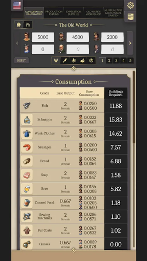 Anno 1800 Companion Tool is a FREE FAN-MADE Anno 1800 companion app for calculating consumption, looking up optimal production chains and supplies for your expeditions, tracking transmute costs, managing collectables, and more!