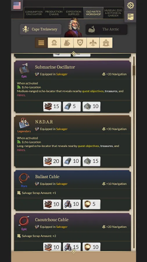 – Quickly look up Old Nate's Workshop items and keep track of the required goods for transmutation!