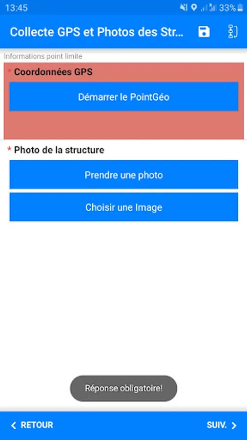 The Canevas Annuel application complements data collection carried out in paper format. It allows the direct collection of geographical coordinates (geolocation) and the taking of a photo of each health facility. Sending them directly to a server when the device is connected to the Internet makes it possible to avoid input errors and to take them into account quickly.