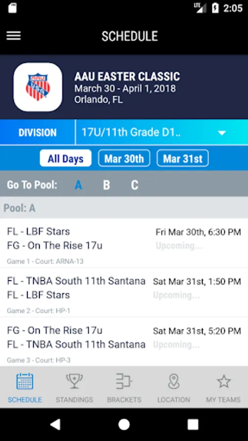 Next Up gives coaches, parents, and fans real time tournament information to enhance the event experience. Users can: