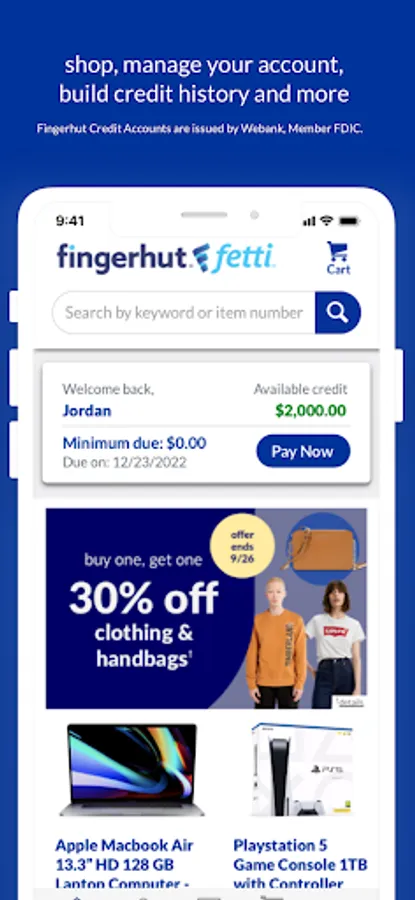 • Make payments on Fingerhut Fetti, Advantage, or FreshStart credit accounts
