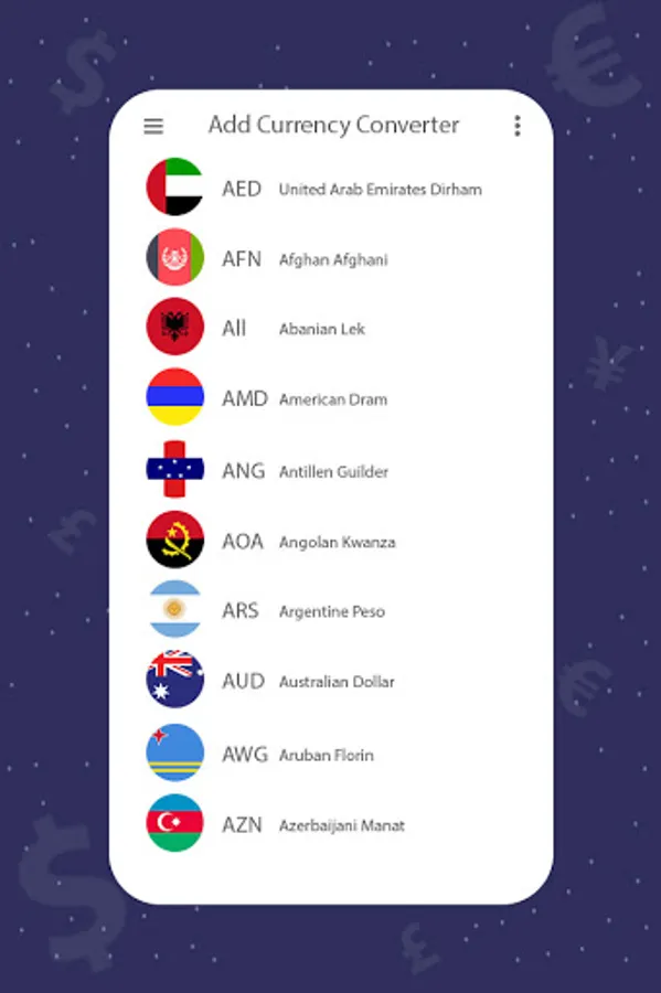 All currency converter has arranged the countries orderly with alphabetical pattern.