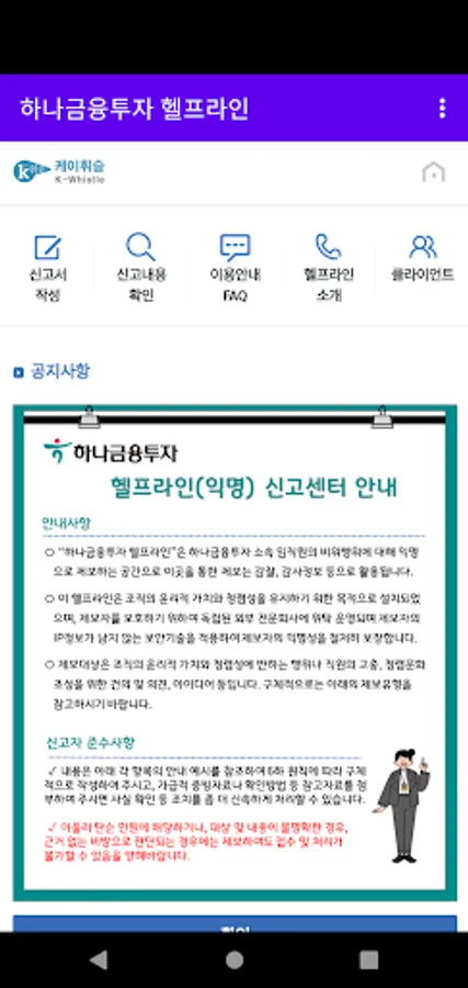 The Korea Business Ethics Management Institute (KBEI), which produces and distributes the Hana Financial Investment Helpline APP, is the first ethical management research institute in Korea established to support ethical management of businesses, finance and public institutions.