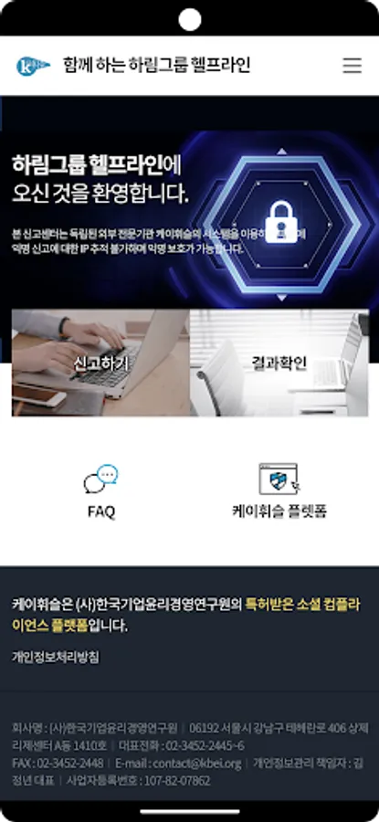 The Korea Business Ethics Management Institute (KBEI), which produces and distributes the Harim Group Helpline APP, is the first ethical management research institute in Korea established to support ethical management of corporations, finance, and public institutions.