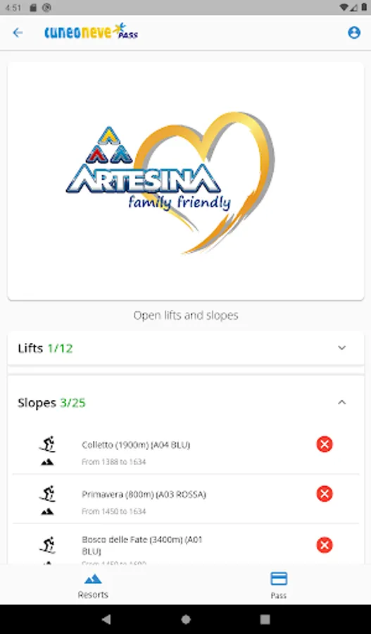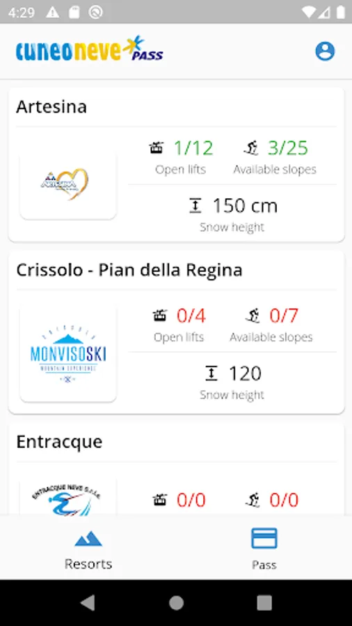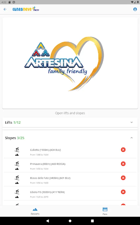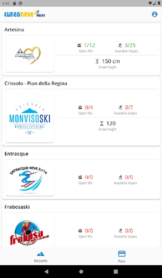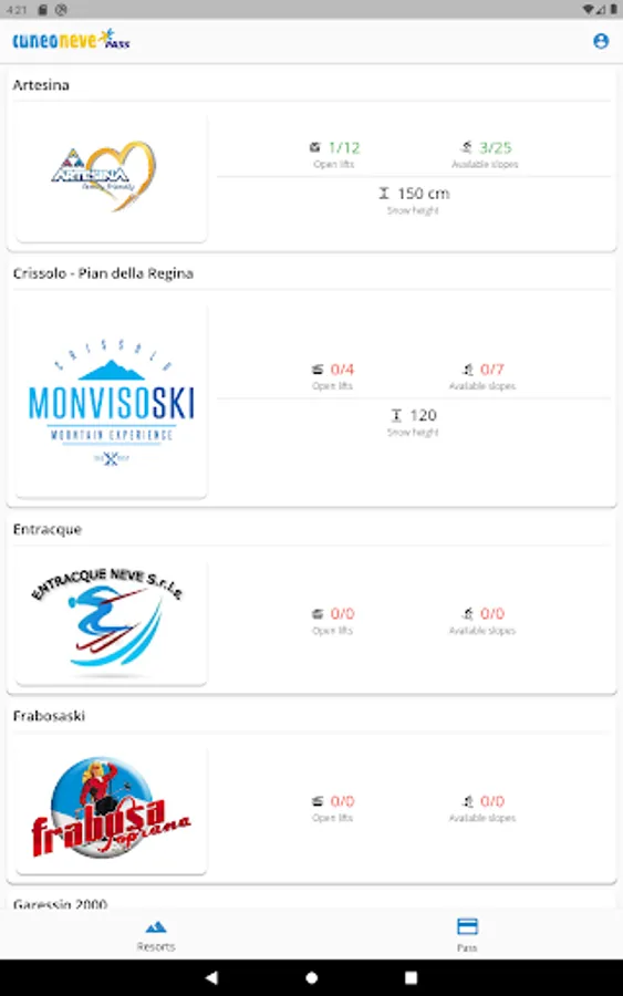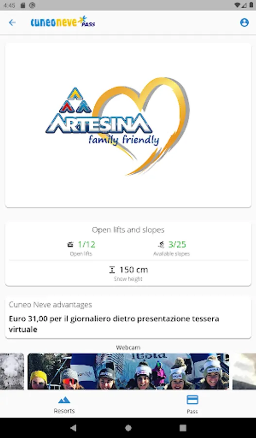 Cuneo Neve Pass is the app for ski enthusiasts who can consult information on the Cuneo ski areas: open lifts and slopes, snow depths, webcams and much more. Thanks to Cuneo Neve Pass, members of amateur ski clubs accredited to the circuit can obtain discounts reserved for them for access to the ski lifts through the virtual card.