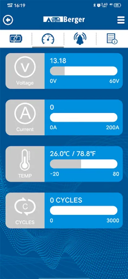 This App provides comprehensive monitoring for Berger lithium batteries, including: