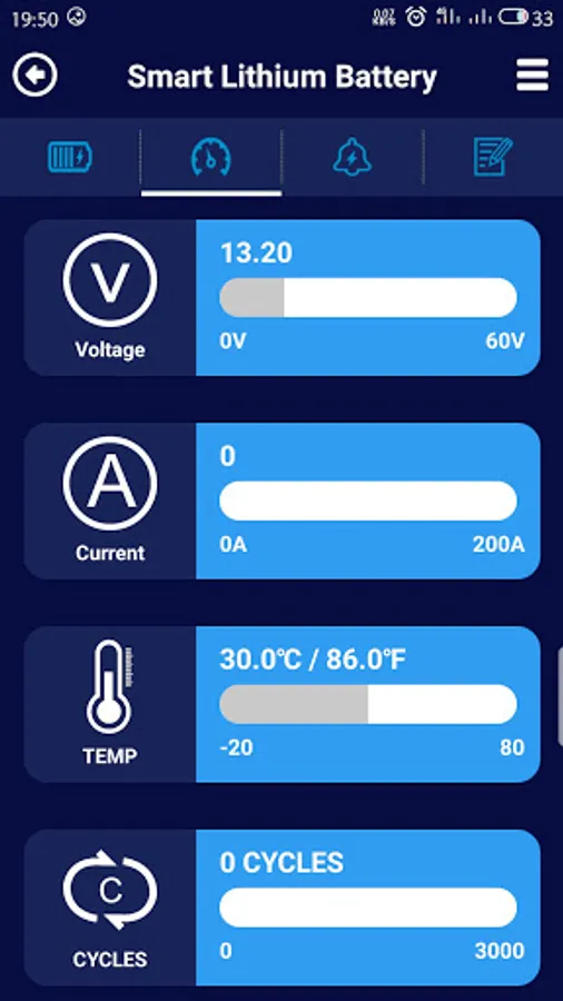 4. This APP can monitoring voltage, current, temperature and cycle life, etc