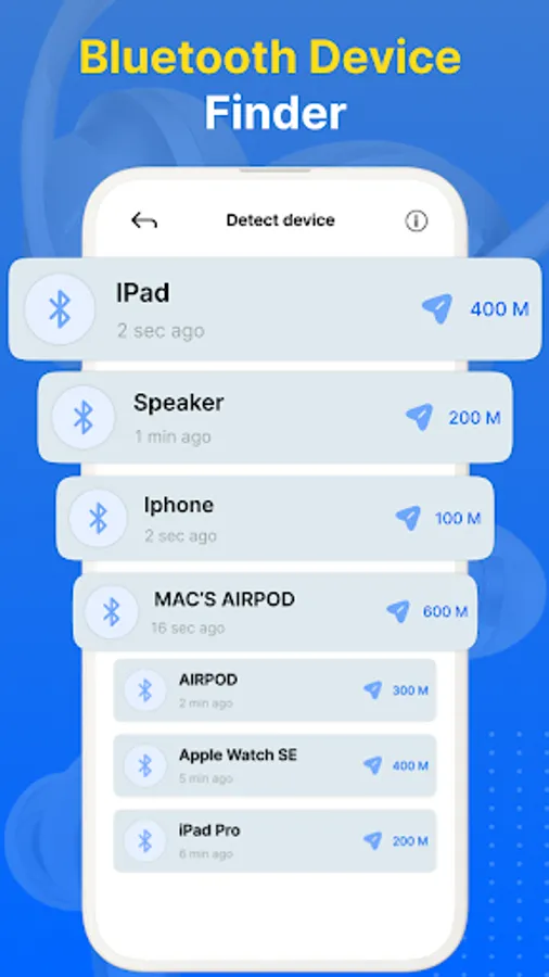 Automatically connect to your Bluetooth devices the moment they’re nearby. Save time and avoid manual pairing — bluetooth finder app is perfect for headphones, AirPods, keyboards, speakers, smartwatches, and more.