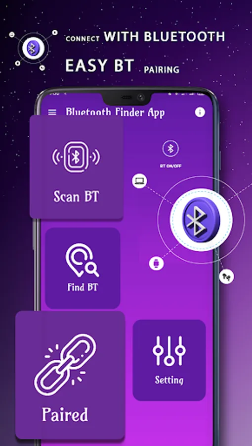 Bluetooth auto connect for android is a smart application that connects easily any Bluetooth device with your phone. Bluetooth finder makes it easy that it finds all Bluetooth devices near you. When the bluetooth scanner starts scanning it shows all Bluetooth pair device and then find your lost bluetooth device by showing its distance that how it for away.