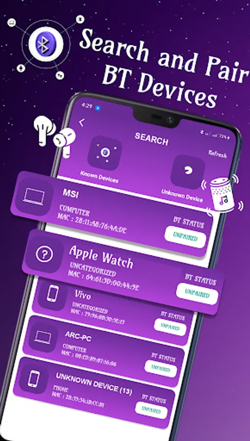 Bluetooth finder app for android finds all kind of lost bluetooth device i-e bluetooth speakers, headset earbuds and another bluetooth pair devices. Bluetooth scanner connect a Bluetooth device and make Bluetooth pair with strong signal strength as a bluetooth auto connect.