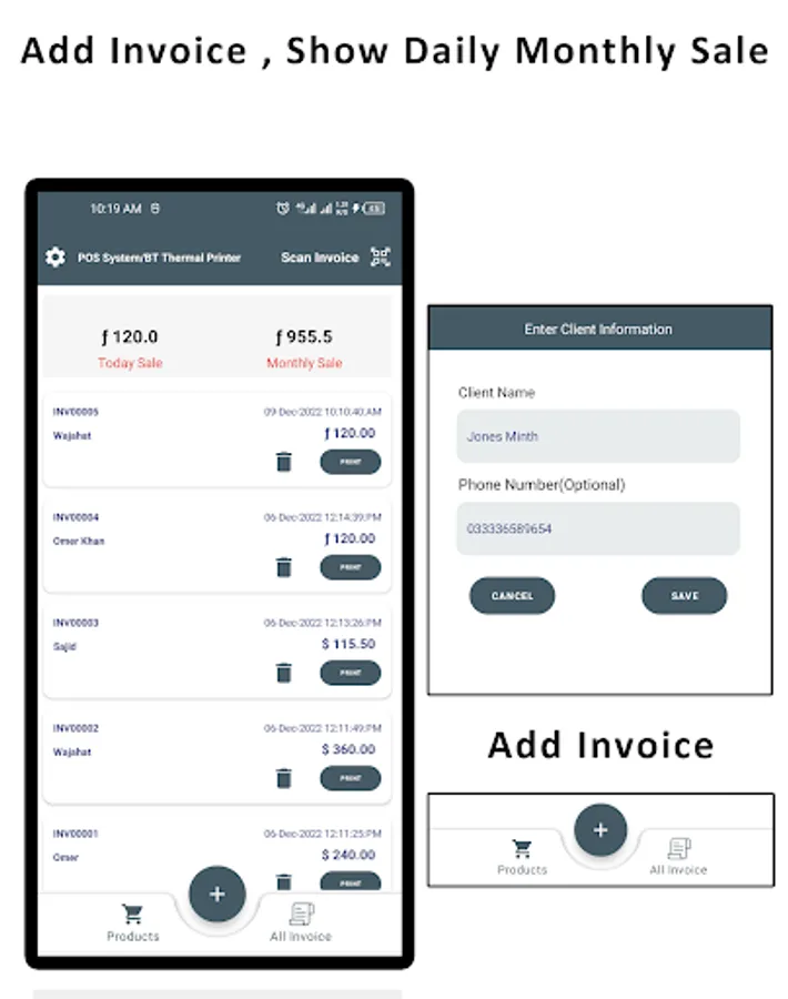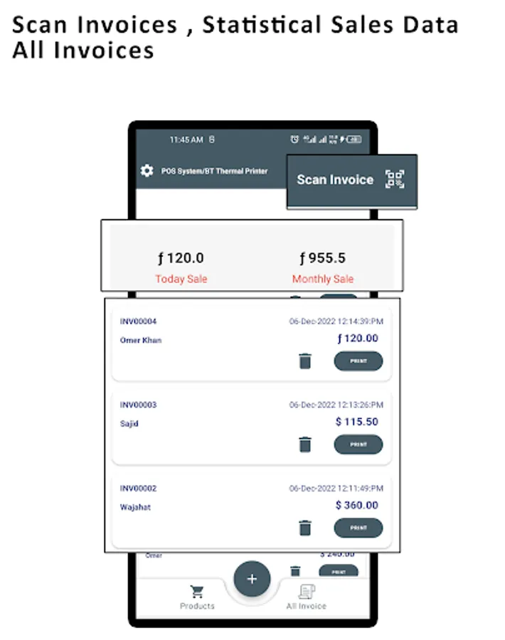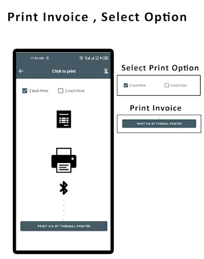 With this point of sale system you can easily print the invoice with Bluetooth thermal printer, you can easily print 2” inch and 3” inch invoices with the help of thermal printer. You just need to connect thermal printer to mobile with the help of Bluetooth.