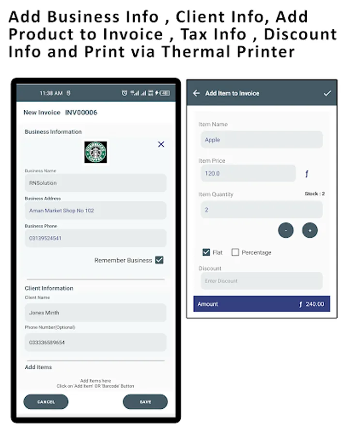 Easily Generate Invoice and keep track of your shop item with this nice tools called point of sale for android system. You can easily implement the barcode concept on each item through this nice POS system, and also you can easily print the invoice via Bluetooth thermal printer and keep track all the invoices history. General Point of sale system you can use it for medicine shop, general store. Improve your invoices system by times and accuracy with the nice point of sale system and best invoice printing via Bluetooth thermal printer.