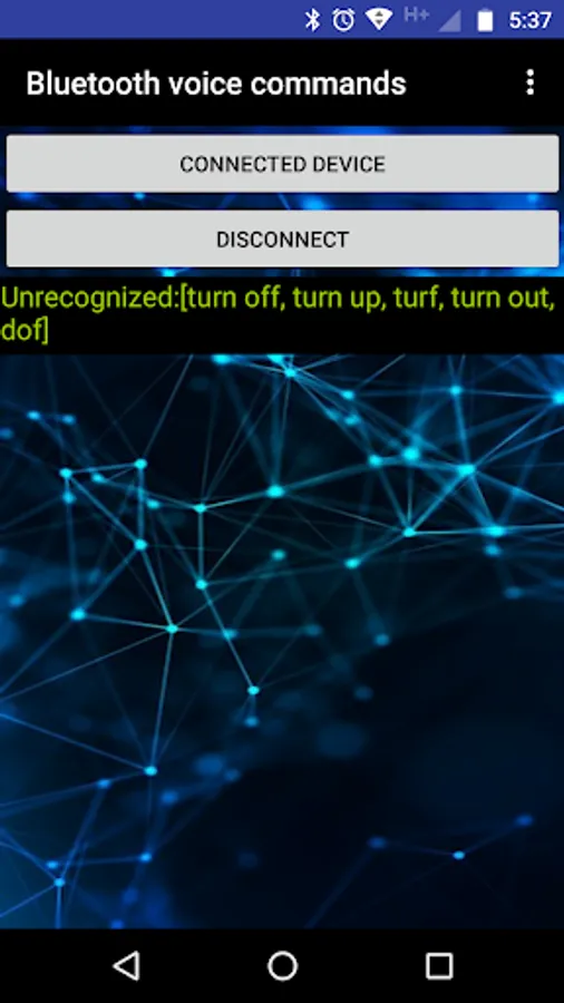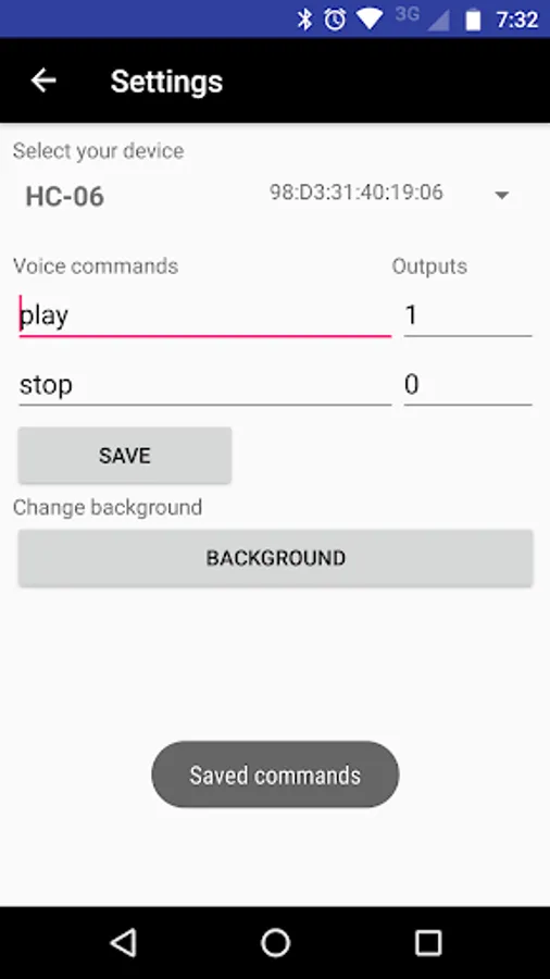 With this app, you can link to a bluetooth module with arduino to activate or deactivate the relays on your board with recognitions of continuous voice commands, in which you can configure as: play, turn on, stop, turn off, enciende, apaga, オンにする,オフにする,