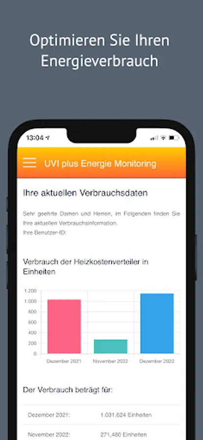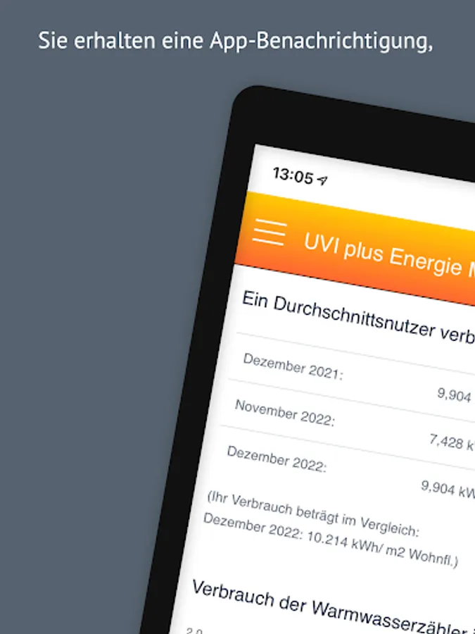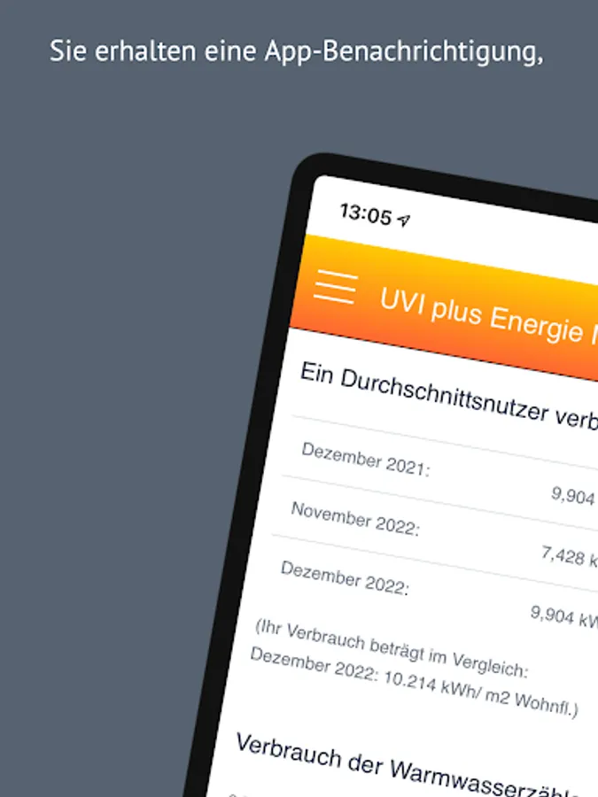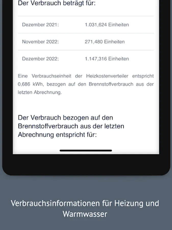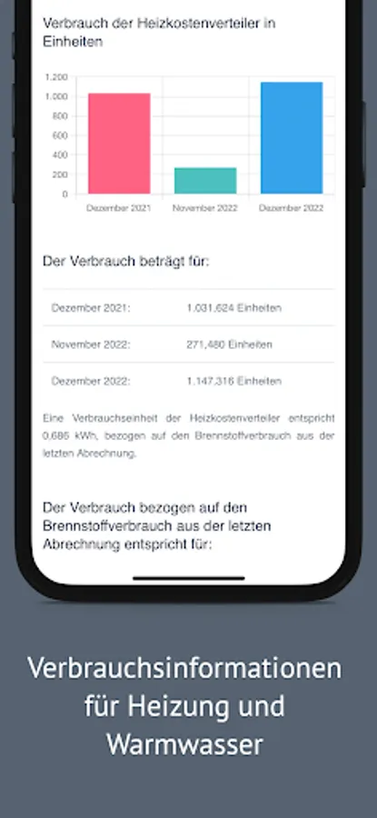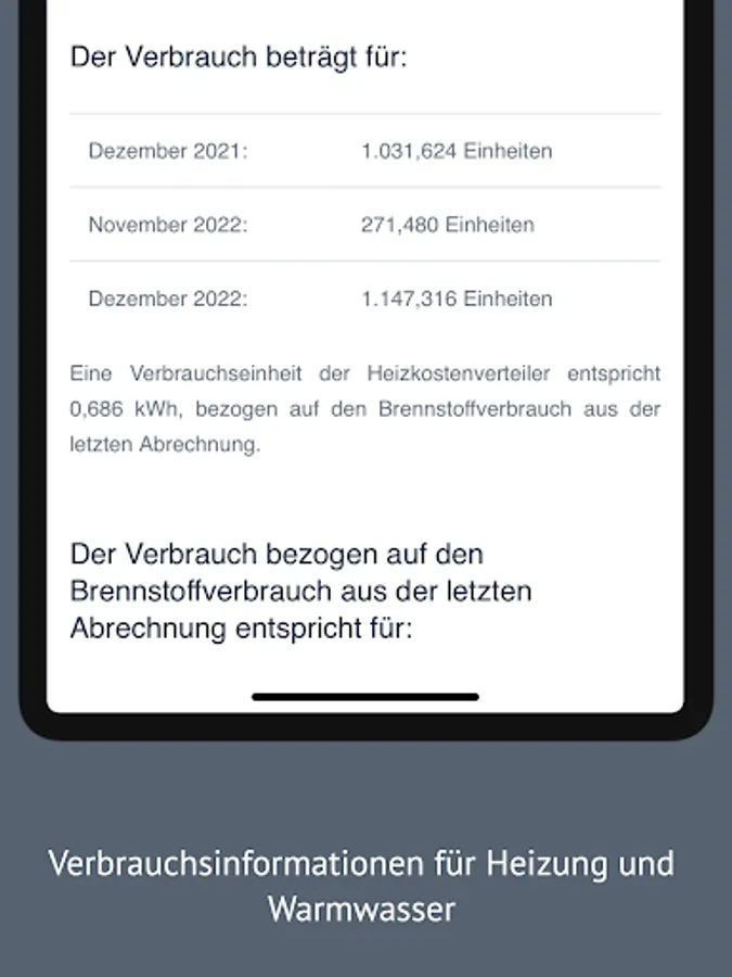 The app provides consumption information for the monthly remote readings of your heat meters,
