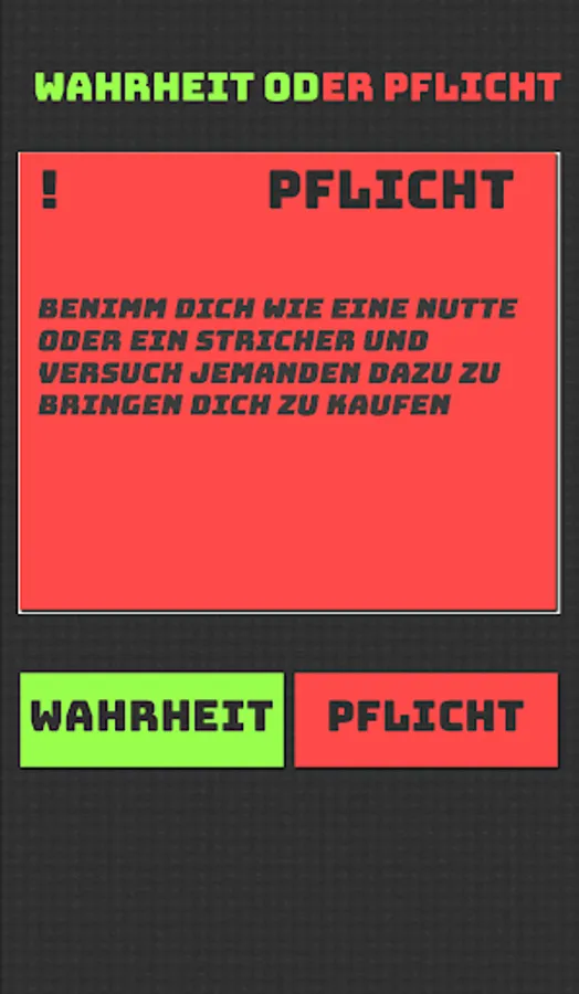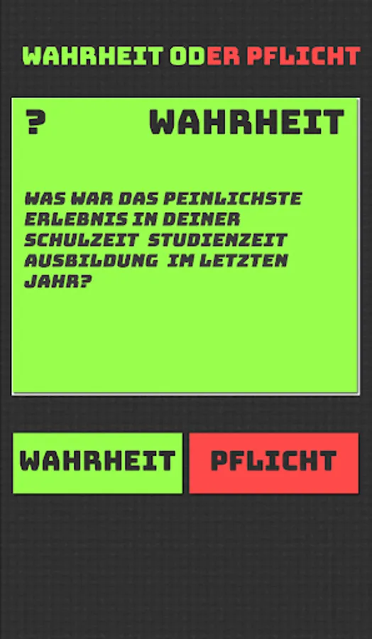 The typical questions about "Truth or Duty" like "Who are you in love with?" or "How many girls or boys have you kissed" are of course always good, because these are the questions that we are extremely interested in. In the case of "compulsory", the classic is "kiss someone in the lap for 5 seconds on the mouth" or "call out the window: 'I am the most beautiful in the world'" ". This is very often taken as a task.