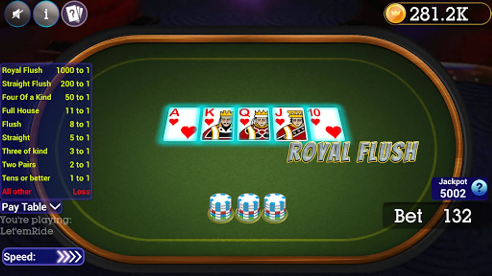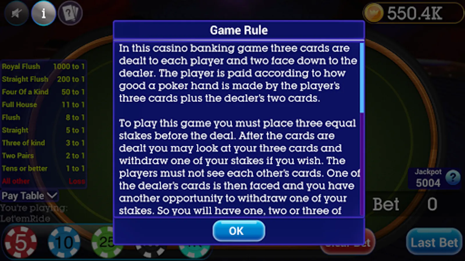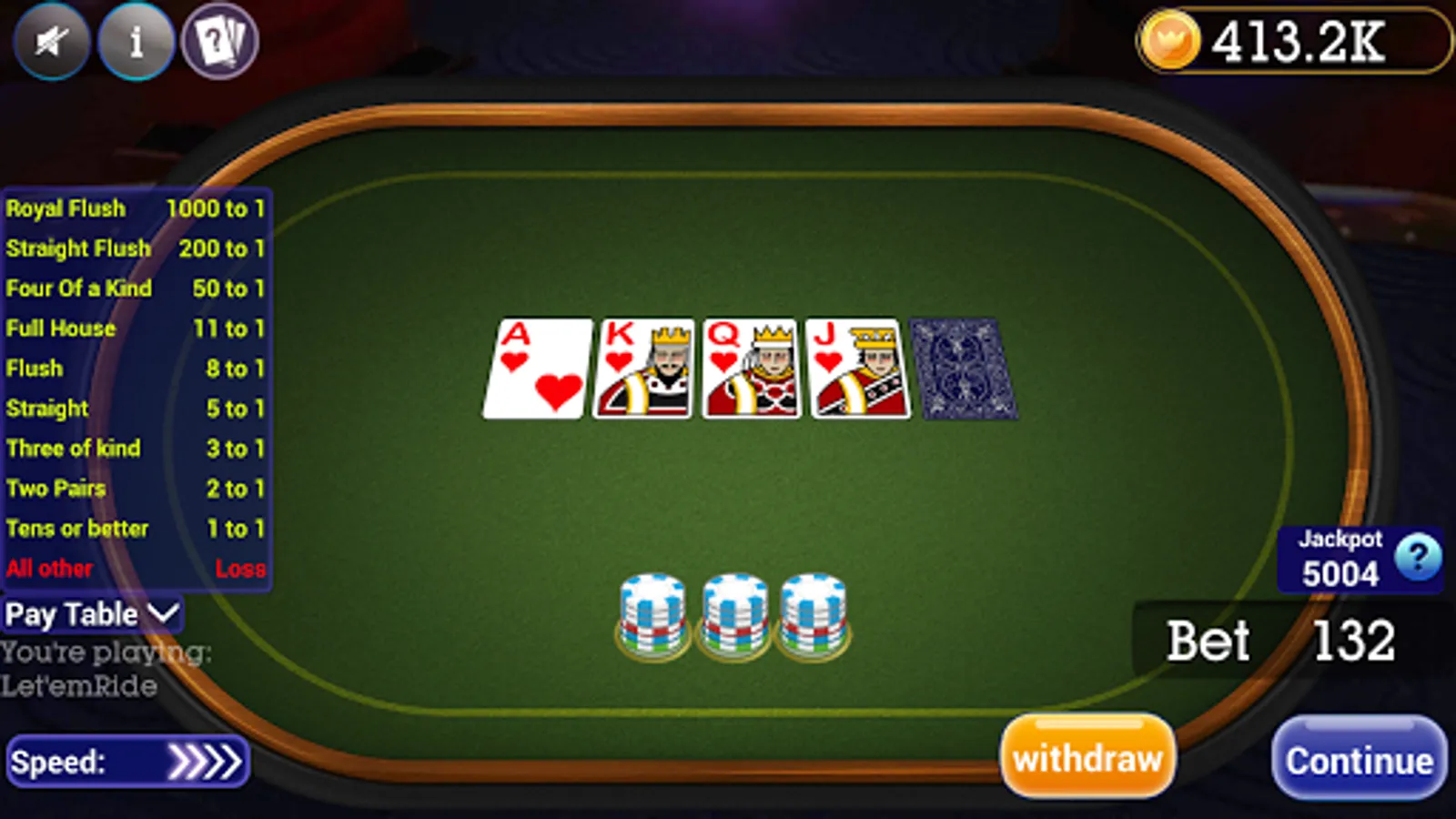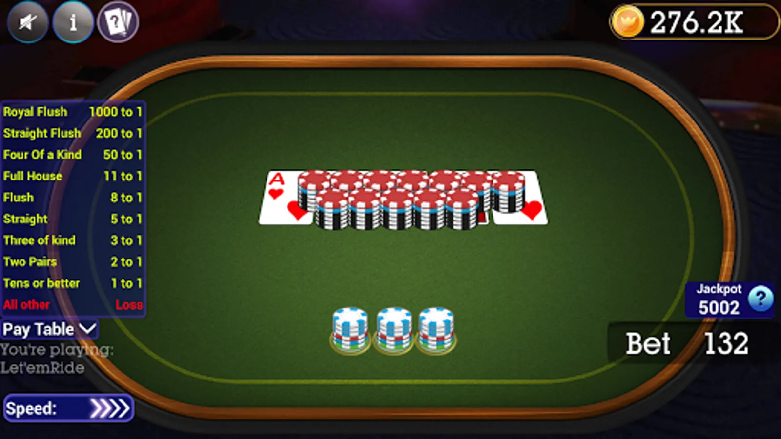 Let it Ride is among the first of the wave of new casino games, starting in the late nineties. It is a simple poker-based game where the player is paid based on his five card hand only.