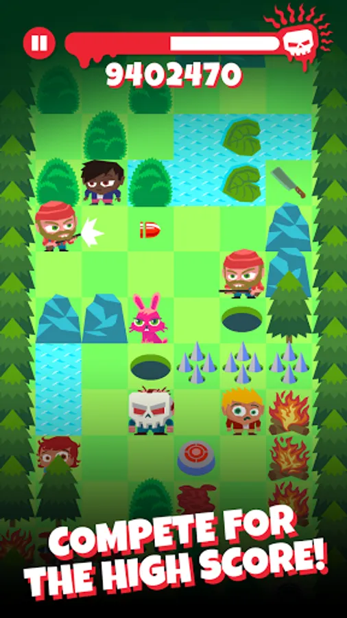 • Tons of traps! Avoid the campfires, bottomless lakes, spike traps, and landmines—or, scare the campers into them for ultimate bonus points!