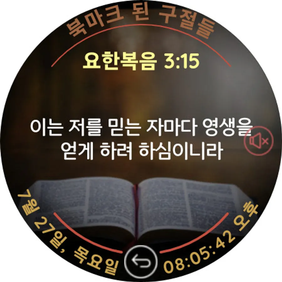 On the Bible reading screen, you can navigate to the previous/next verse by turning the bezel.
