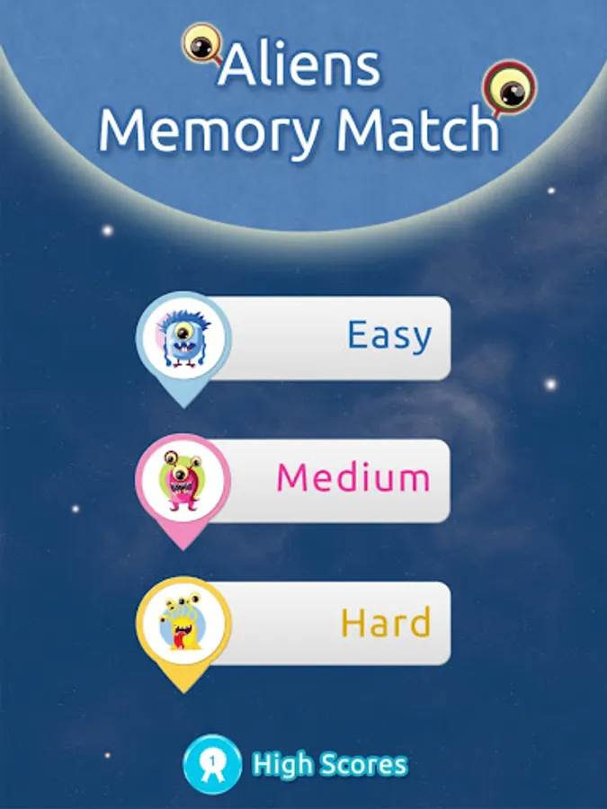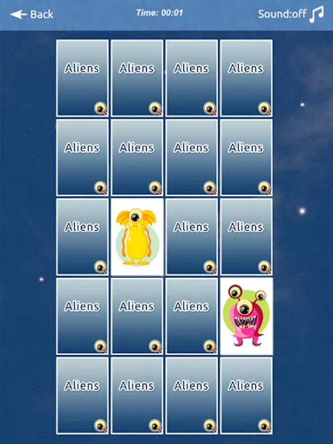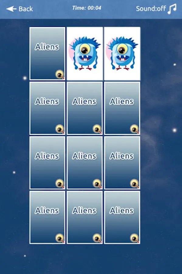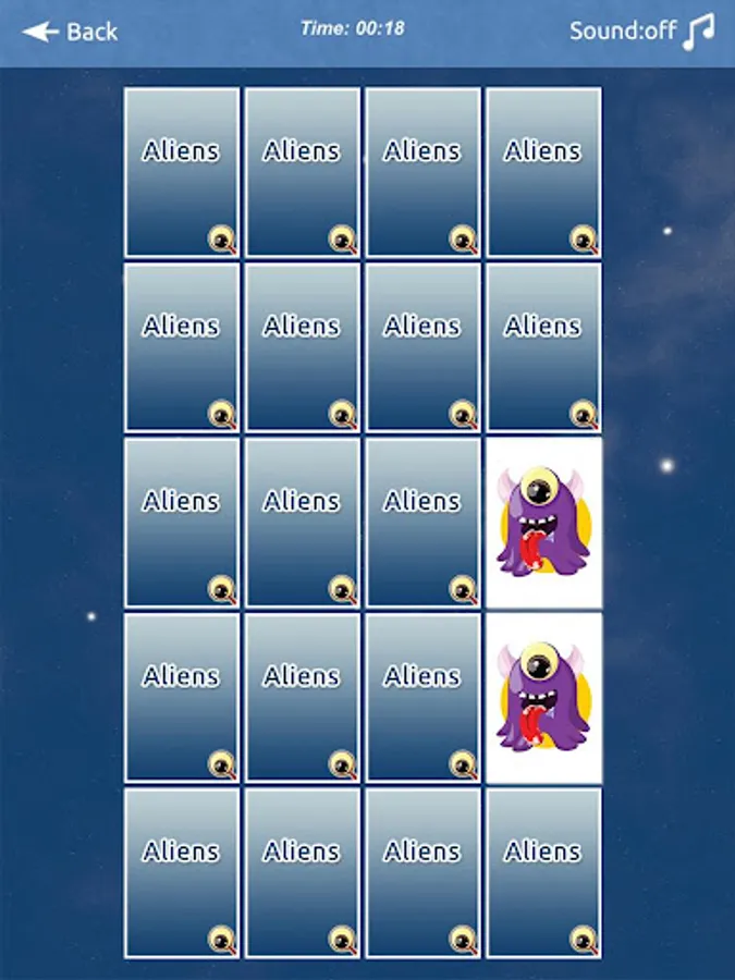 Memory matching game with cute aliens that helps to improve your memory.