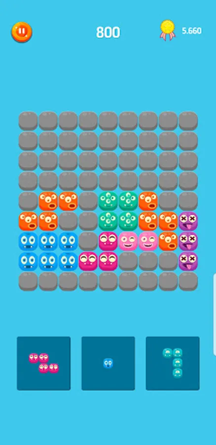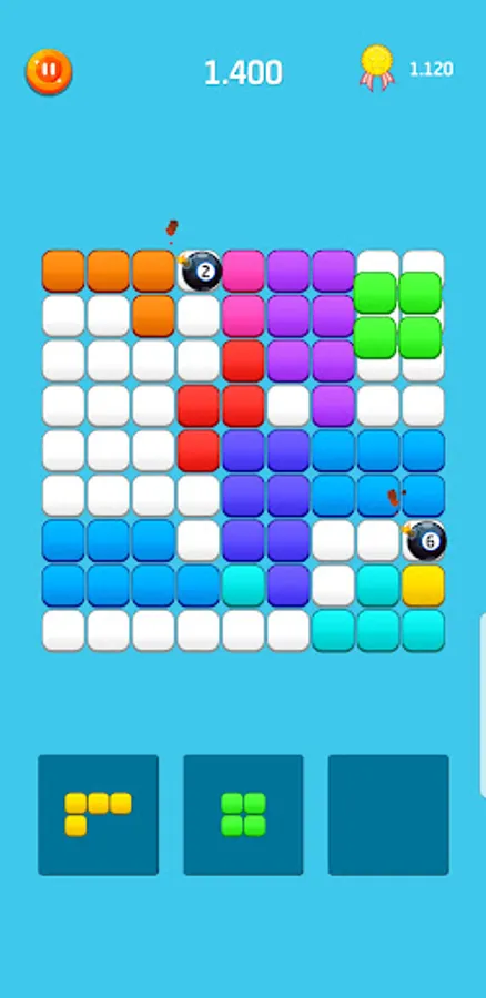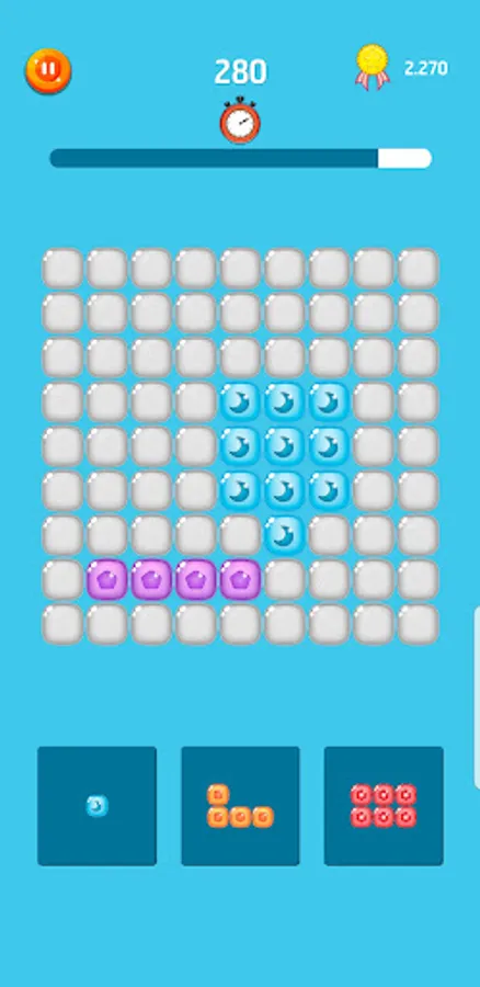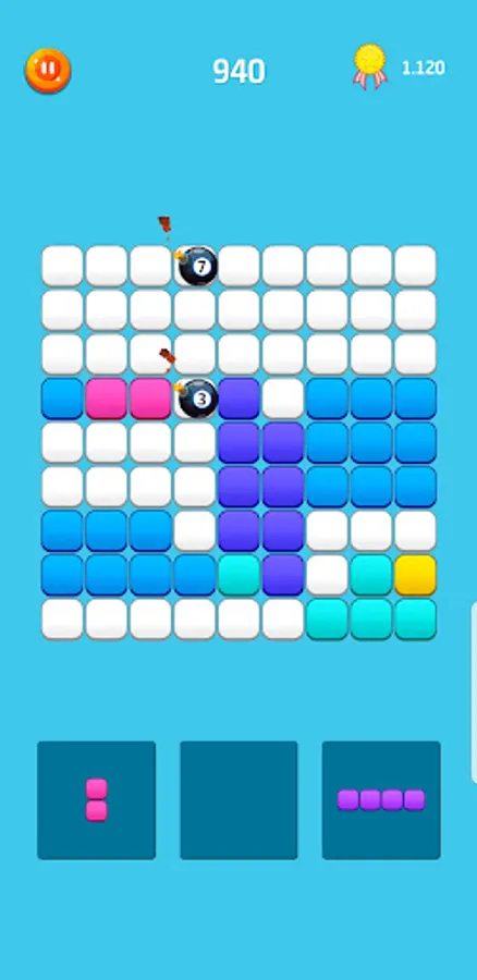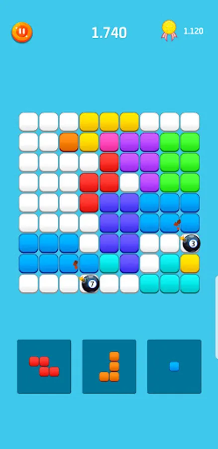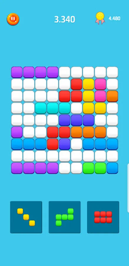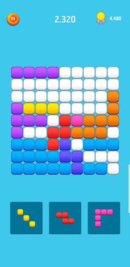 Three blocks appear at the bottom of the screen and you have to place them on the board getting the highest number of points and following a strategy that allows you to continue playing. When none of the 3 pieces can be placed on the board, the game is over.