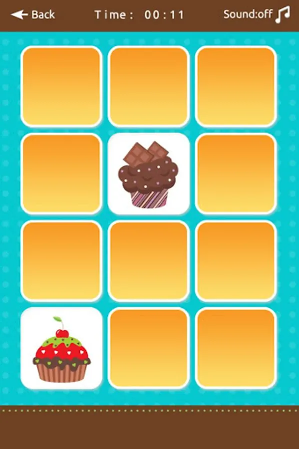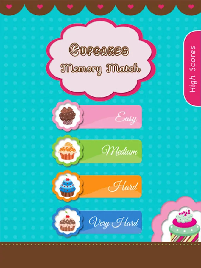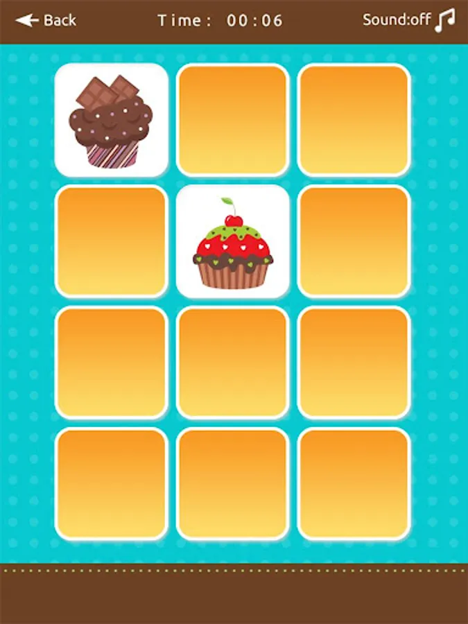 Memory matching game with sweet cupcakes images that helps to improve your memory.