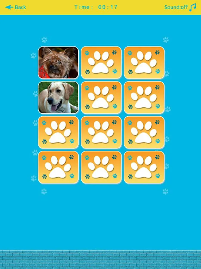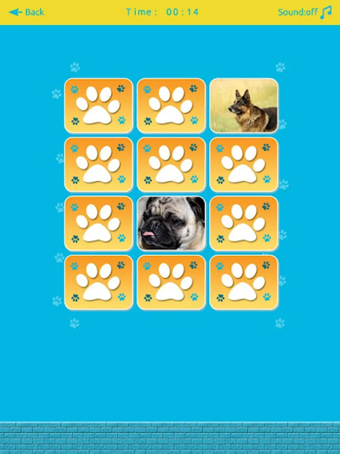 Playing this memory matching and brain training game will train your memory and improve your concentration while you enjoy finding the pairs of cute dogs and animals.