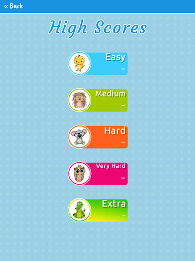 - 5 levels (easy, medium, hard, very hard and extra mode)