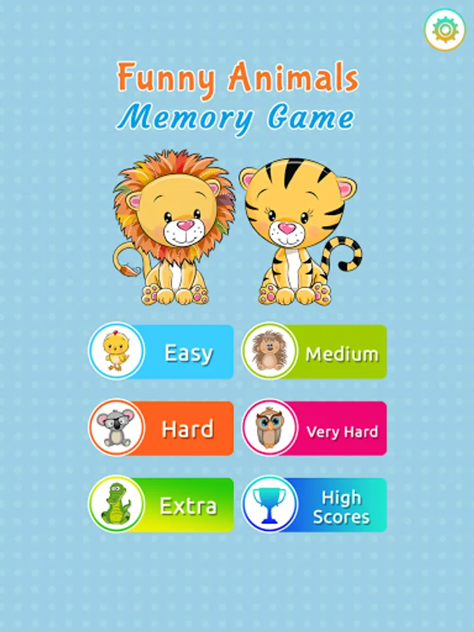 Playing this memory matching and brain training game will train your memory and improve your concentration while you enjoy finding the pairs of cute images of animals.