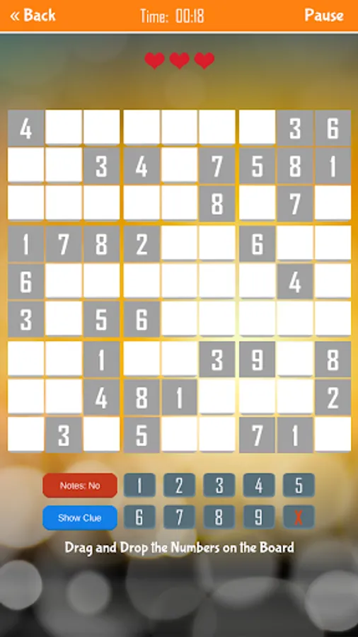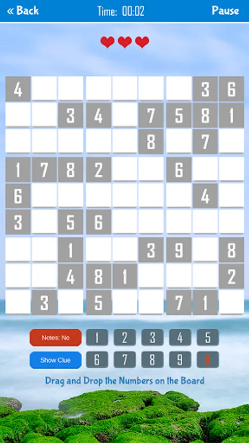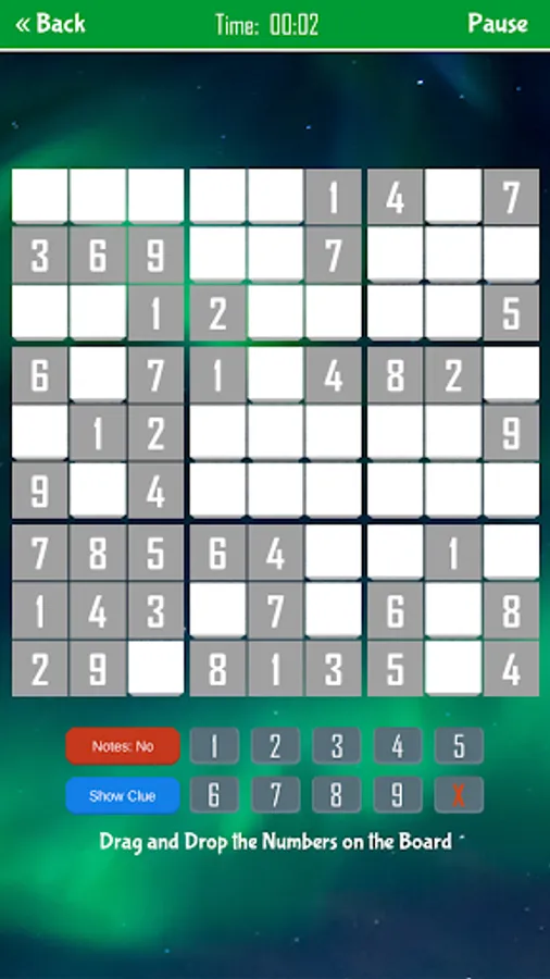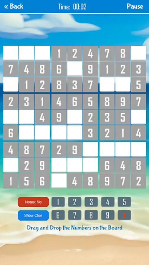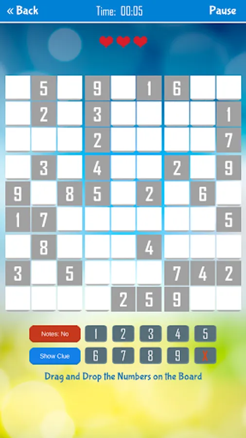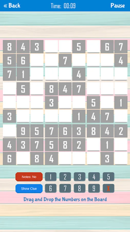 Sudoku where you have to drag and drop the numbers on the board to solve the puzzles.