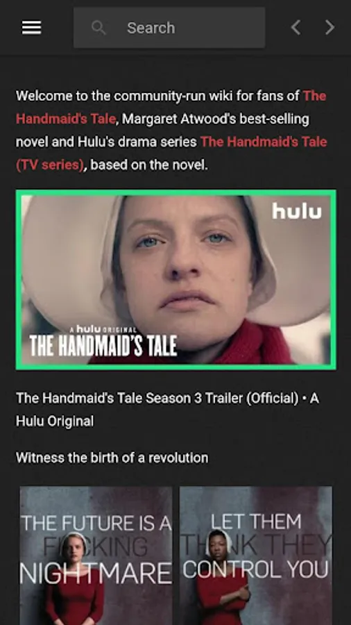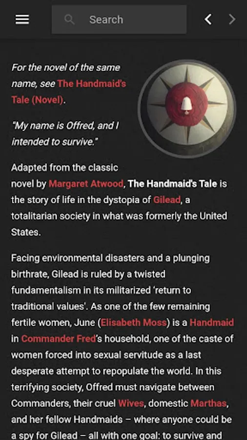 This unofficial guide for The Handmaid's Tale is a fan curated encyclopedia of all things related to The Handmaid's Tale. The app includes accurate and recent information curated. Browse seasons, characters, casts, and more! It's the perfect companion app for your viewing session of The Handmaid's Tale.