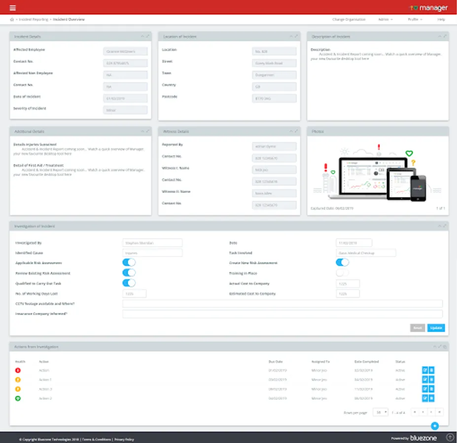 The bluezone incident manager app is part of a cloud based platform that allows your workforce to quickly and accurately record incidents on all devices.