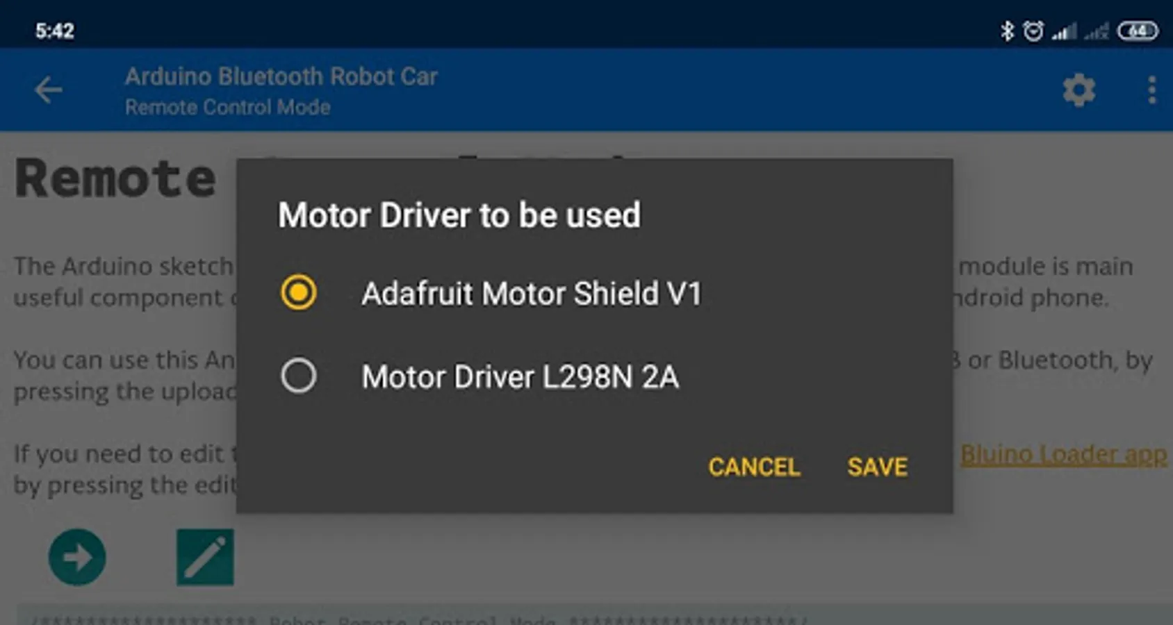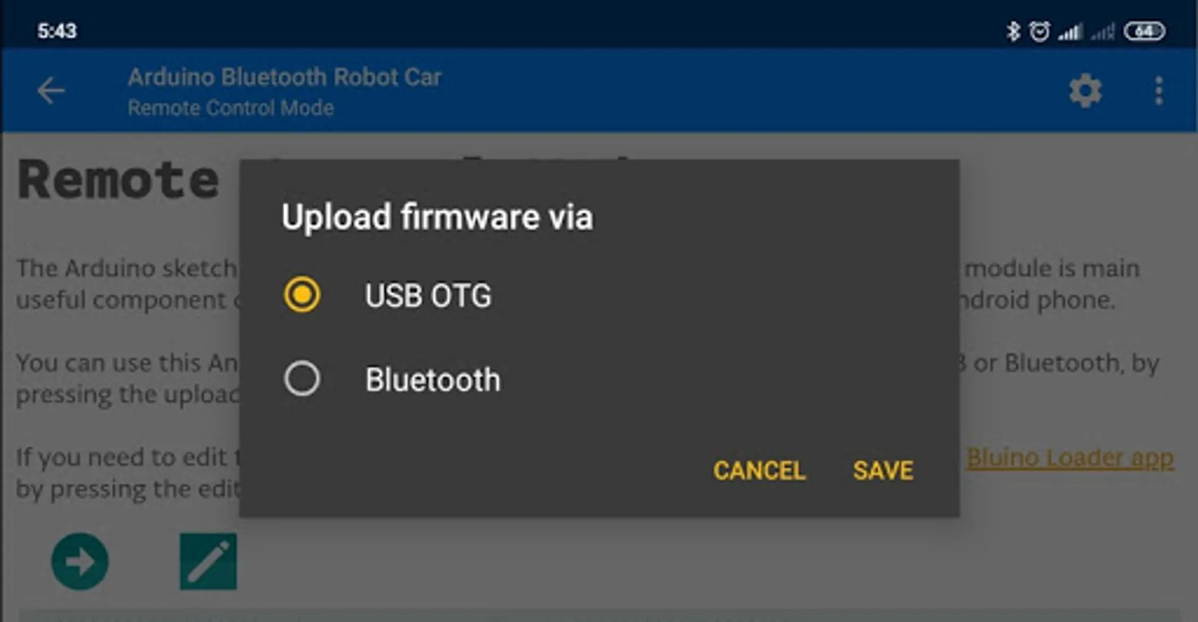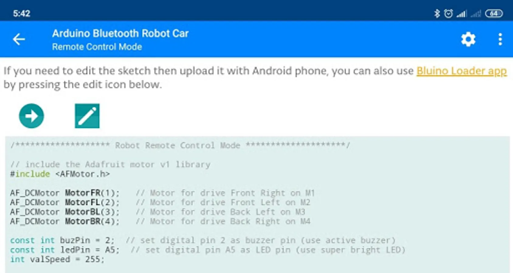 This app is designed to make it easy for you to build a Basic Arduino robot car that is equipped with circuit diagram and code. The app allows you to control an Arduino based robot car over Bluetooth, and also you can upload Arduino sketch/code directly from your Android phone to Arduino via USB OTG or Bluetooth.