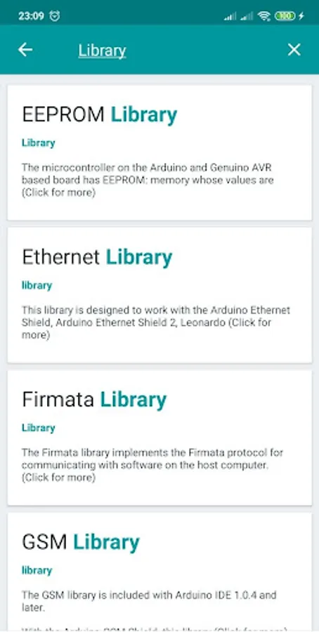 In this app contains ads and potentially in-app purchases, you can access content online for free at www.arduino.cc/en/Reference/Libraries