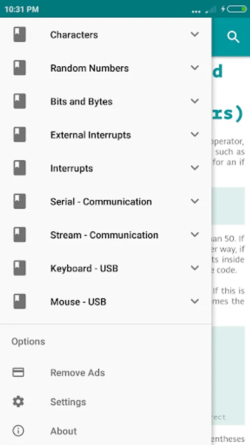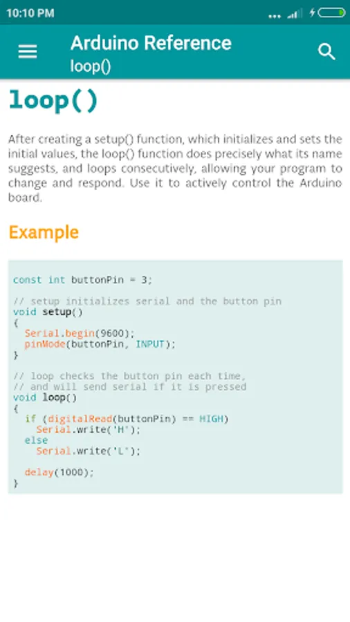 In this app contains ads and potentially in-app purchases, you can access content online for free at www.arduino.cc/reference/en