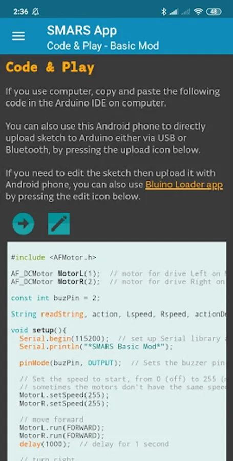 SMARS App aims to make it easier for you to build a SMARS robot included of instructions, coding Arduino and Android remote control interface for playing with fun.