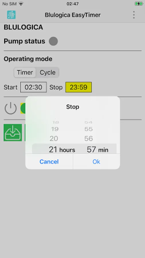The Blulogica EasyTimer App can read and write on the Blulogica NFC Mifare card. The smartphone must be close to the card. The Download button reads the programming data from the NFC card. The Upload button sends the data to the NFC card. The App allows you to modify the displayed data before uploading them.