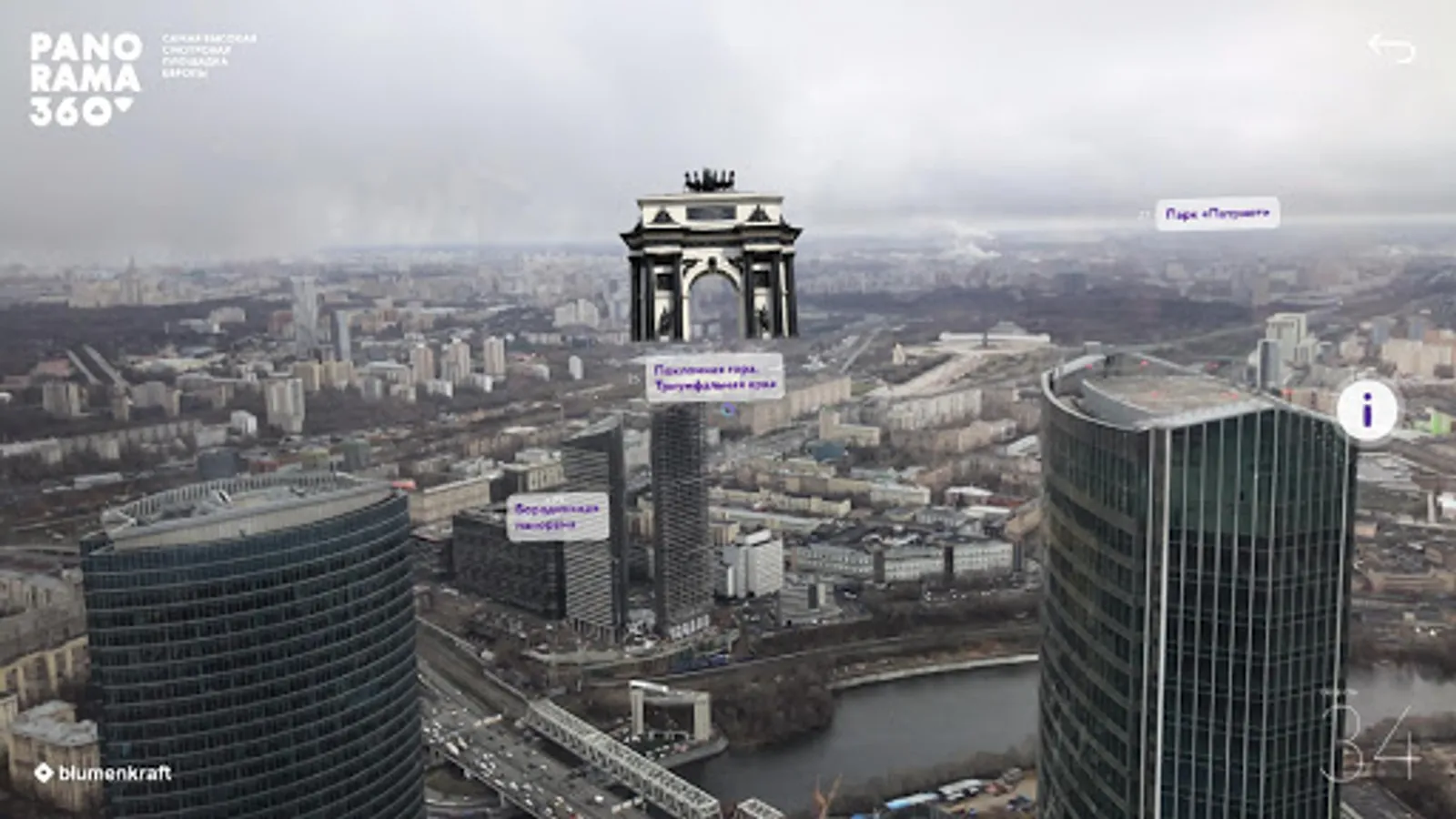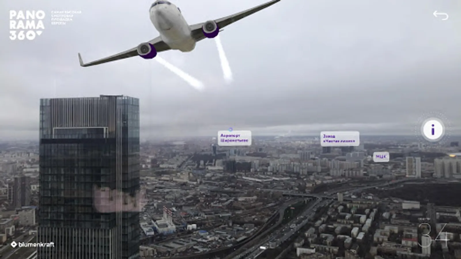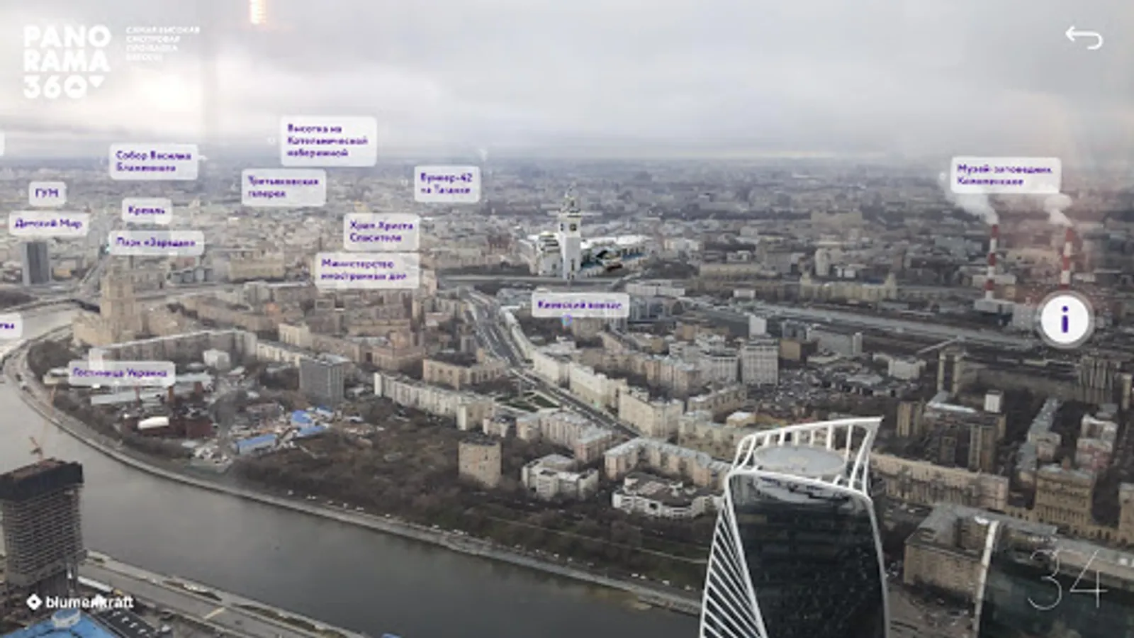 Thanks to the virtual guide an observation deck visitor will be able to explore the variety of architectural objects, iconic historical places, main sightseeing attractions of Moscow - due to constructed reality technology users will explore the city and will be able to choose a route for further travel.