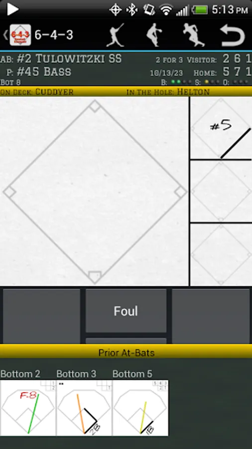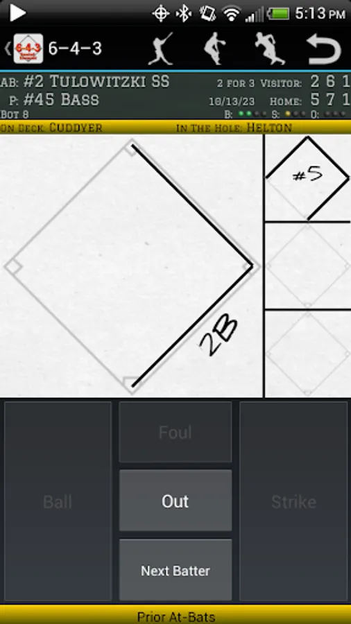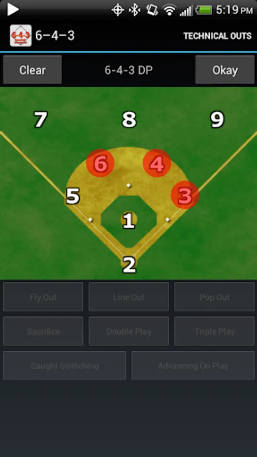 Why should you have to learn a whole new scoring system? Some scoring apps want to interview you about every play. With 6-4-3, though, you simply jot down what happened just like you would on your scoresheet. Use your finger to draw a line from home to first to second, and 6-4-3 records a double.