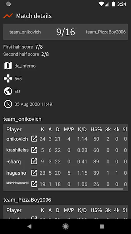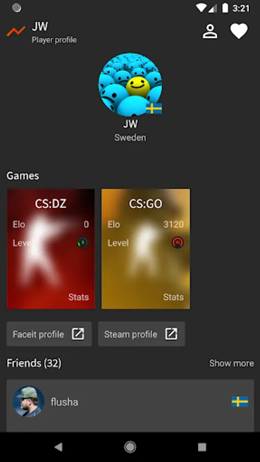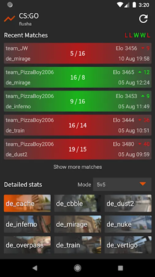 🔸 Matches played, win rate, kill/death ratio, headshots%