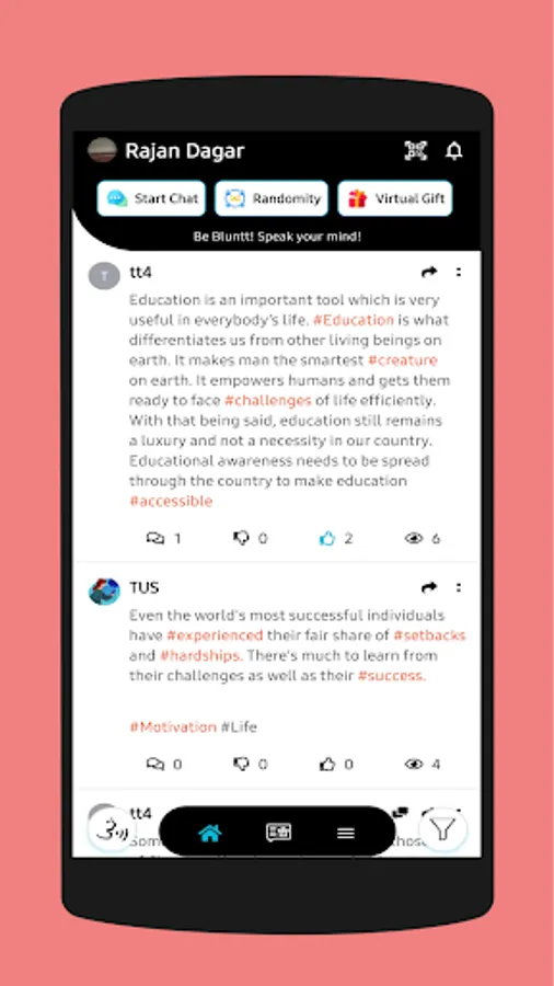 ★ Want to talk about something with like-minded people? Bluntt's 'express your thoughts' wall is calling you!