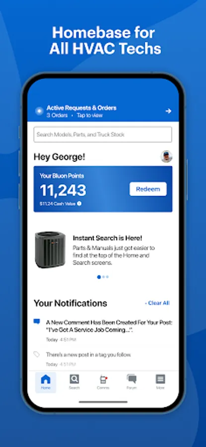 Bluon helps you finish jobs at warp speed. Search our database of 500,000 HVAC models for manuals and part lists, and easily check price and availability from your local supplier! Use our 24/7 field support to get help from our HVAC veterans, and stay connected with your team while on the job.
