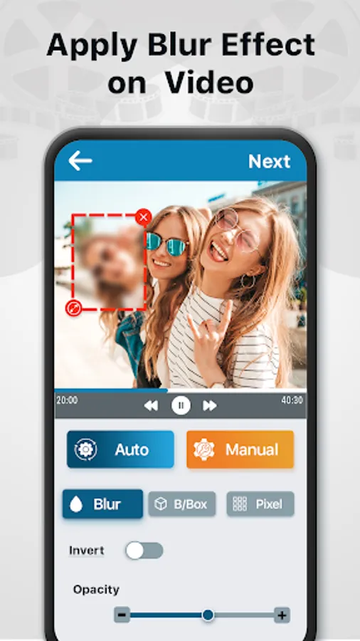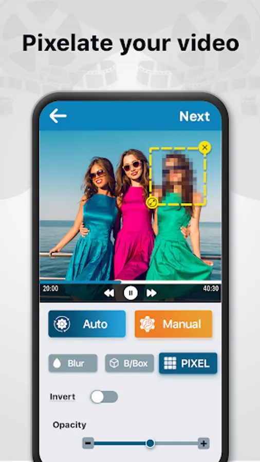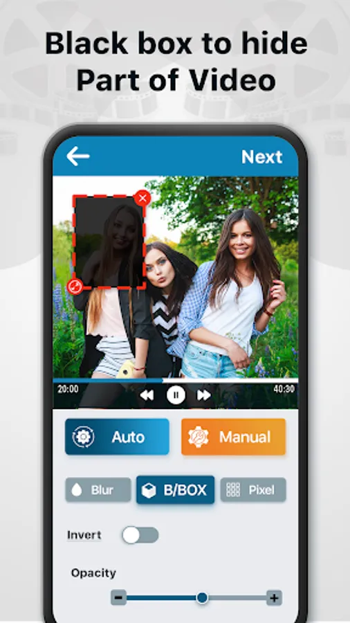 ✅ Select auto or manual options to hide something in video & to blur pictures.