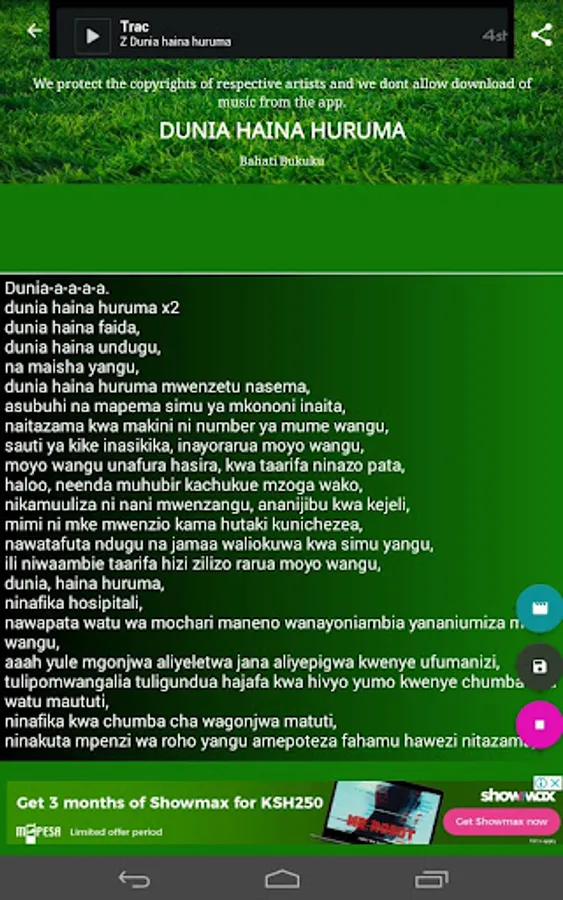 By complying with the APIs Terms of Use, This app does not provide downloading of any tracks. This is NOT a music downloader.