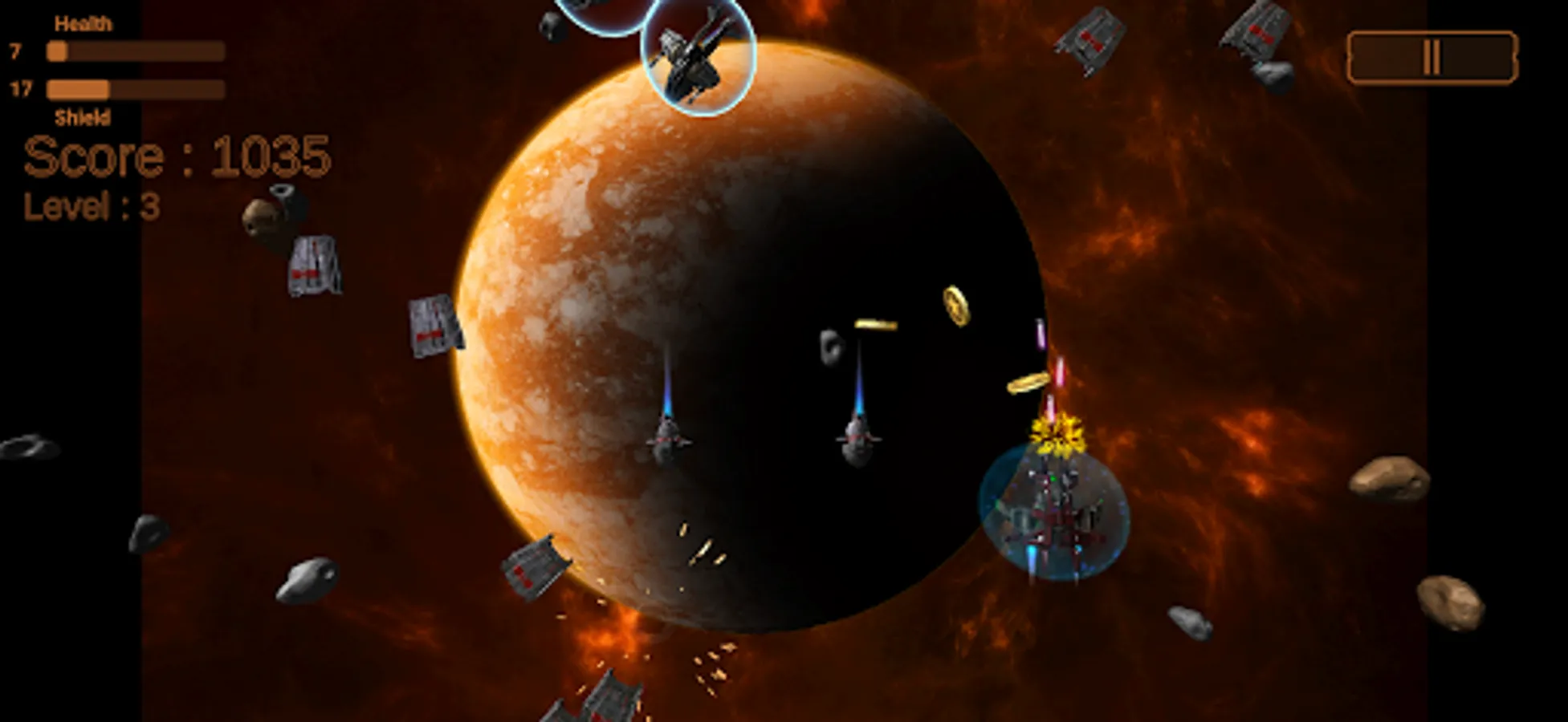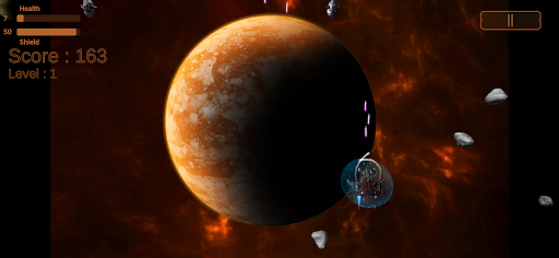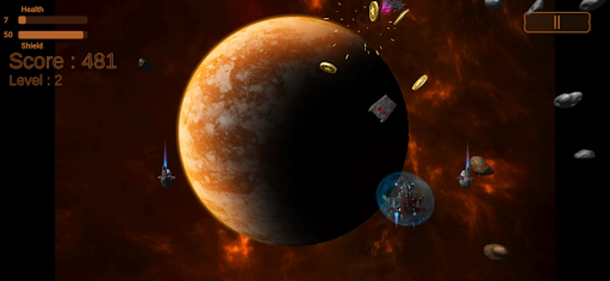 Enjoy Space Galaxy Shooter. Enjoy space shooter at galaxy the attack. Play this Space Galaxy Shooter provides nothing but fun. Collect as many coins and shield as space shooter. Protect your galaxy from space alien intruder. This space as shooter you will in galaxy attack. Defend your Galactica.
