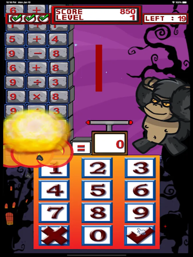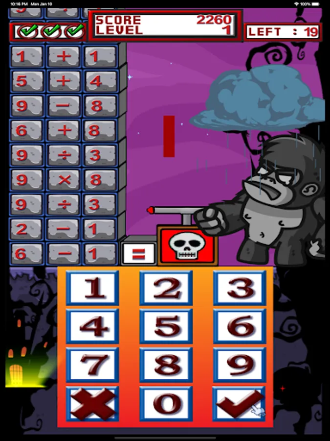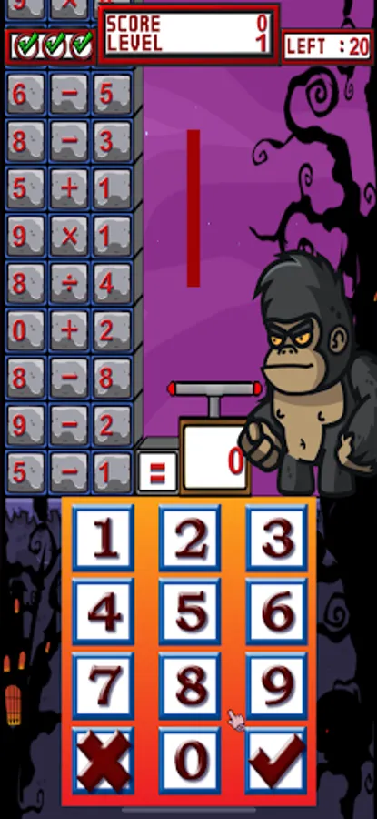 Demolition Math is a super math game. In the game, You must erased all math test blocks with number pad. If you choose wrong answer, your character will be struck by lightning. So, You must choose correct answer for your character.