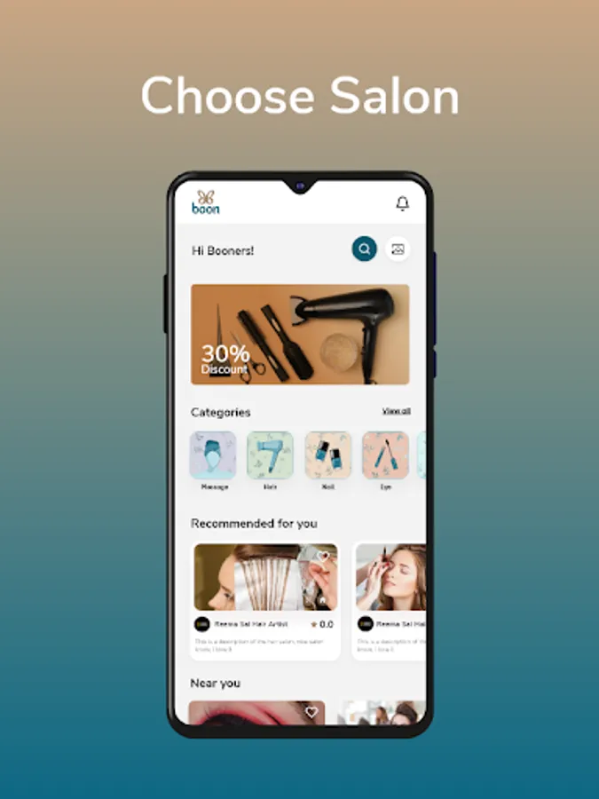 Boon.sa offers to beauty salons and other service providers special services and customized features that seek to help them focus on improving, developing, and providing their actual services rather than spending time, effort and monetary costs on administrative tasks. In addition, Boon.sa contributes to easing clients' access to the salons or other service providers and enabling them to reach a larger segment of clients.